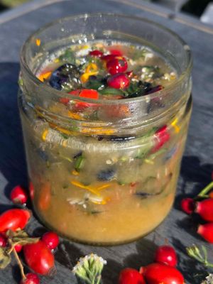 Mit dem Honig und Apfelssig übergiessen, umrühren und verschließen.