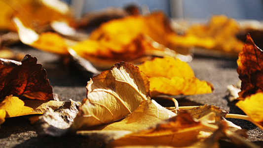 Blätter, die welken und fallen und gleichzeitig eine Explosion aus Gold, Rot und Orange.